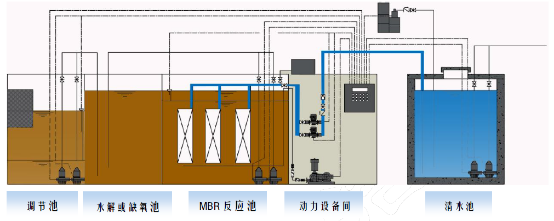 調節(jié)池:調節(jié)池主要是調節(jié)污水水量和水質,同時還可用作事故排水存儲場所。一般容積建議為日處理量的35%-40%。調節(jié)池建議客戶自建鋼混結構,也可包含在成套設備內。 缺氧池:缺氧池作為前處理單元,主要起到如下作用:①為廢水的反硝化提供場所,是消化過程產生的硝態(tài)氮充分轉化為氮氣;②為大分子有機物在水解酶的作用下分解為小分子,提高污水可生化性。 MBR池:膜生物反應器(MBR)為微生物降解有機物的場所。膜生物反應器可保留世代周期較長的微生物,可實現(xiàn)對污水深度凈化,同時硝化菌在系統(tǒng)內能充分繁殖,其硝化效果明顯,對橫渡脫氮除磷提供可能,池內設置污泥回流泵,將泥水回流至缺氧池進行反硝化,從而保證污水的總氮可以達到中水回用的標準,同時污泥回流泵管路上設置污泥排放口,可以定期(1-3個月)排泥,保證膜生物反應器內污泥的濃度。膜生物反應器可在8000-15000ml/g污泥濃度下長時間穩(wěn)定運行。 清水池:清水池作為MBR產水儲存池亦作為膜清洗配藥池,同時作為高位水箱防止抽吸泵停止運行時產生吸虹現(xiàn)象。 設備間:設備間為機電設備放置的場所。設備間配置有鼓風機,自吸泵、PLC控制柜及紫外線消毒設備。 MBR膜生物反應器的主要優(yōu)點: 優(yōu)點一:MBR工藝可實現(xiàn)項目半自動化或全自動化控制,較傳統(tǒng)工藝顯著減少了管理難度和管理風險,保證設備運行穩(wěn)定。 優(yōu)點二:出水水質優(yōu)異,可直接回用。出水水質可以吧、達到《城市污水再生利用城市雜用水水質》(GB/T18920-2002)實現(xiàn)污水資源化。 優(yōu)勢三:減少占地面積,節(jié)省土建投資。采用MBR作為二級處理工藝的污水處理廠,占地面積可以節(jié)省20%—30%。 優(yōu)點四:大幅減少剩余污泥的排放量,污泥被MBR膜片截留在MBR反應器內,有充足的時間進行反應,組成污泥的有機質可充分降解為二氧化碳和水,因此剩余污泥產量極低。 優(yōu)點五:采用紫外線消毒工藝,安全健康。傳統(tǒng)消毒工藝主要采用氯系消毒劑,不論液氯還是二氧化氯,都屬于危險化學品且腐蝕性大,而MBR工藝出水濁度幾乎為零,可采用紫外線消毒,確保污水細菌學指標滿足排放要求,同時節(jié)省了購買消毒藥劑的成本。 MBR(膜生物反應器)工藝特征: 1) 對污水中的有機物進行降解、硝化菌將NH3-N硝化為NO3-,對有機物去除率在95%以上;對氨氮去除率在97%以上。 2) 預處理過程簡單,不需要大量投加化學藥劑,操作過程簡單; 3) 回收率高,水的回收率可達到99%以上,這種靈活性容許操作員在流入的未凈化水品質惡化時通過降低回收率減少對隔膜的“壓力”,但同時產生相同總量和品質的凈化水; 4) 系統(tǒng)使用邏輯進程監(jiān)控系統(tǒng),包括流量傳送器和壓力傳送器等等。這種高度受控的系統(tǒng)方法可用于設計最靈活的系統(tǒng)并提高操作員接口的最低要求; 5) 空氣沖洗保證在各種流入條件下都能可靠運行; 6) 自動反沖保證在較低的過膜壓力下提高整體膜通量; 7) 占地面積小,只有傳統(tǒng)工藝的10~20%; 8) 使用壽命長,連續(xù)運行時間可達7萬小時,斷絲率小于1%。 |