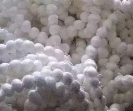 成分:PE球殼 +醛化維綸絲花束或者PP寬扁絲帶 適用范圍:適合兼氧、厭氧, 也有用于曝氣池。 易掛、脫膜,污泥減量效果一般,整體使用效果一般,成本較高,適用于改造或小型污水處理裝置及流化床。