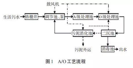 在美麗鄉(xiāng)村建設(shè)理念的推進(jìn)下,目前農(nóng)村經(jīng)濟(jì)發(fā)展很快。殊不知,在農(nóng)村發(fā)展經(jīng)濟(jì)的過(guò)程中同樣被環(huán)境污染問題所困擾。大多數(shù)農(nóng)村地區(qū)缺乏健全的污水處理污水設(shè)備,其農(nóng)村生活污水大多數(shù)直接被排入河流,對(duì)農(nóng)村生態(tài)環(huán)境造成了嚴(yán)重影響。所以,目前急需采用先進(jìn)的污水處理工藝治理農(nóng)村農(nóng)村生活污水問題。一體化污水處理設(shè)備有著管理方便、工作效率高、能耗低、投資小及其占地面積小等優(yōu)點(diǎn),特別適合在農(nóng)村地區(qū)使用。基于此,此文就農(nóng)村生活污水一體化處理污水設(shè)備工藝進(jìn)行簡(jiǎn)要分析。 一體化污水處理設(shè)備工藝介紹 所謂污水可生化性,就是指污水中含有的污染物通過(guò)微生物的生命活動(dòng)來(lái)改變污染物的化學(xué)結(jié)構(gòu),因此改變污染物的化學(xué)和物理性能所能達(dá)到的程度。生物處理就是指微生物借助污水中的有機(jī)物維持生命特征、開展生命活動(dòng),并借助新陳代謝實(shí)現(xiàn)對(duì)污染物的清除。所以,必須對(duì)水里污染物的含量通過(guò)試驗(yàn)、測(cè)算的方法來(lái)確定,繼而判斷其是否能進(jìn)行微生物處理。 BOD5與COD是比較常用的水質(zhì)指標(biāo),借助B/C比實(shí)現(xiàn)可生化性評(píng)價(jià)是一種的方法。當(dāng)B/C比值大于時(shí),可以對(duì)污水進(jìn)行可生化處理。隨著兩者比值的增大,其可行性隨之增大。在實(shí)際微生物處理中,不需要將有機(jī)物完全分解為水、硝酸鹽及二氧化碳,只要保證其成分達(dá)到規(guī)定標(biāo)準(zhǔn)即可。 就一體化污水處理設(shè)備工藝而言,以活性污泥法為例,其較為成熟的工藝包括A/O法、A2/O法及其他改進(jìn)工藝等。其中,A/O脫氮法就是指缺氧—好氧法,而A/O除磷法就是指厭氧—好氧法,在污水經(jīng)過(guò)相應(yīng)區(qū)域時(shí)借助各種微生物菌的分解作用,促使氮、磷及有機(jī)物等污染物得到有效去除。 A/O主體工藝原理 厭氧—好氧活性污泥法(Anoxic/Oxic,簡(jiǎn)稱A/O)是由厭氧和好氧兩部分反應(yīng)組成的污水生物處理工藝。污水進(jìn)入?yún)捬醭睾螅c回流污泥混合。活性污泥中的聚磷菌在這一過(guò)程中大量吸收污水中的BOD,并將污泥中的磷以正磷酸鹽的形式釋放到混合液中。混合液進(jìn)入好氧池后,有機(jī)物被氧化分解,同時(shí)聚磷菌大量吸收混合液中的正磷酸鹽到污泥中。由于聚磷菌在好氧環(huán)境中的吸磷量要遠(yuǎn)遠(yuǎn)大于其在厭氧環(huán)境中的釋磷量,因此,污水經(jīng)過(guò)“厭氧—好氧”的,達(dá)到除磷目的。 AO工藝特點(diǎn) 采用A/O工藝作為主體工藝的一體化污水處理設(shè)備具有除磷功能、脫氮功能及減少有機(jī)物功能等,其能有效避免出現(xiàn)污泥膨脹現(xiàn)象,并且操作極其簡(jiǎn)便。并且填料比表面積較大,池內(nèi)具有良好的充氧條件,生物接觸氧化池內(nèi)單位容積的生物固體量高,再加上污泥回流,反應(yīng)池內(nèi)活性污泥濃度較高,因此兼有活性污泥法的特點(diǎn),具有較高的容積負(fù)荷。由于生物固體量多,當(dāng)有機(jī)容積負(fù)荷較高時(shí),其F/M比可以保持在一定水平,因此污泥產(chǎn)量能保證不大于經(jīng)活性污泥法所產(chǎn)生的污泥量。并且該工藝操作十分簡(jiǎn)單、運(yùn)轉(zhuǎn)成本較低、處理效果良好、運(yùn)行穩(wěn)定,完全可以滿足污水治理要求,保證污水能達(dá)到排放標(biāo)準(zhǔn)。 AO工藝流程 如圖1所示,生活污水經(jīng)格柵井流入調(diào)節(jié)池后,由污水泵抽送至A級(jí)兼氧池,兼氧池內(nèi)掛有彈性填料,借助填料中兼氧細(xì)菌自身的吸附水解作用,使污水中對(duì)生物細(xì)菌有抑制作用和難以生物降解的有機(jī)物水解,同時(shí)將大分子有機(jī)物水解為小分子有機(jī)物,并對(duì)固體有機(jī)物進(jìn)行降解,減少了污泥量,降低污水中懸浮固體的含量。同時(shí),利用污水中的有機(jī)物作為碳源,使從后級(jí)好氧段回流的硝化液中的亞硝酸鹽氮、硝酸鹽氮經(jīng)過(guò)兼氧細(xì)菌作用后,形成氣態(tài)氮從污水中逸出,實(shí)現(xiàn)污水脫氮目標(biāo),降解污水中的有機(jī)物,提高污水的生化可降解性,同時(shí)有效除去污水中的懸浮物及氨氮。兼氧池出水進(jìn)入O級(jí)好氧接觸氧化池,好氧池內(nèi)好氧微生物在水體中有充足溶解氧的條件下,利用污水中的可溶性污染物進(jìn)行新陳代謝,達(dá)到去除污水中可溶解性污染物的目的。好氧池出水自流入二沉池,污水中大部分懸浮物在二沉池中能得以有效去除。二沉池出水自流入中間水池儲(chǔ)存,中間水泵再提升至沙過(guò)濾器,去除懸浮雜質(zhì)、顆粒及膠體等雜質(zhì),確保出水達(dá)到排放標(biāo)準(zhǔn)后消毒排放。